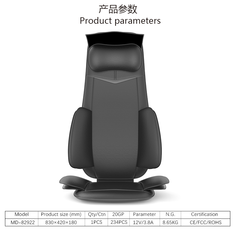 3.單電機(jī)8頭背部揉捏,普通車充,12V 5A適配器