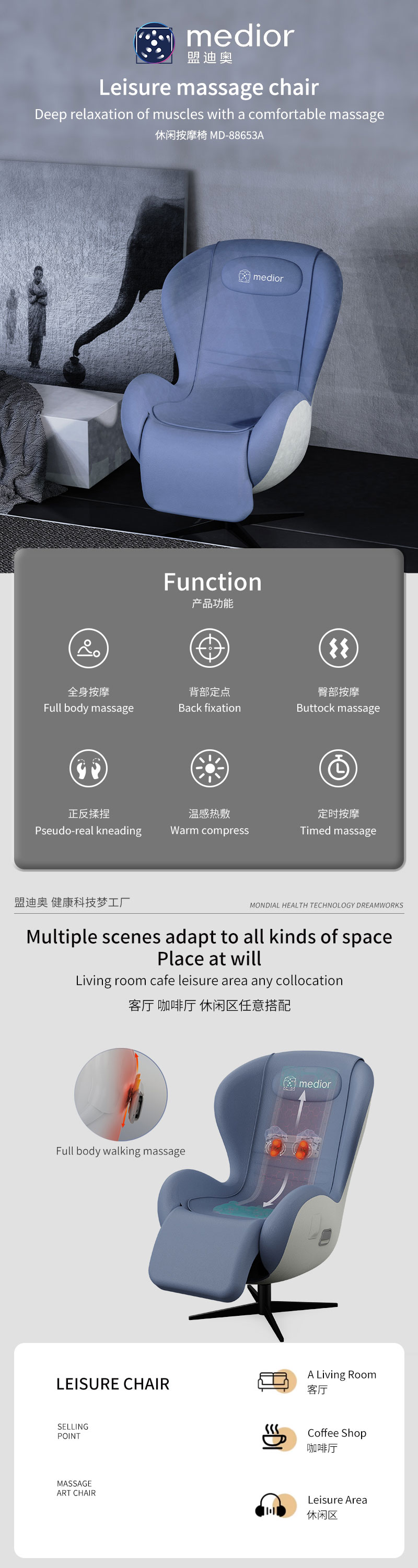 柔性休閑按摩椅 可坐可躺90-160°角度可調(diào)節(jié)仿真人揉捏按摩手法舒緩腰背 多功能遙控器一鍵啟動 按摩行程95cm,從肩膀到小腿360°旋轉(zhuǎn)可拆卸披風 方便清洗 獨家專利柔性機芯 超薄可折疊 包裝體積小