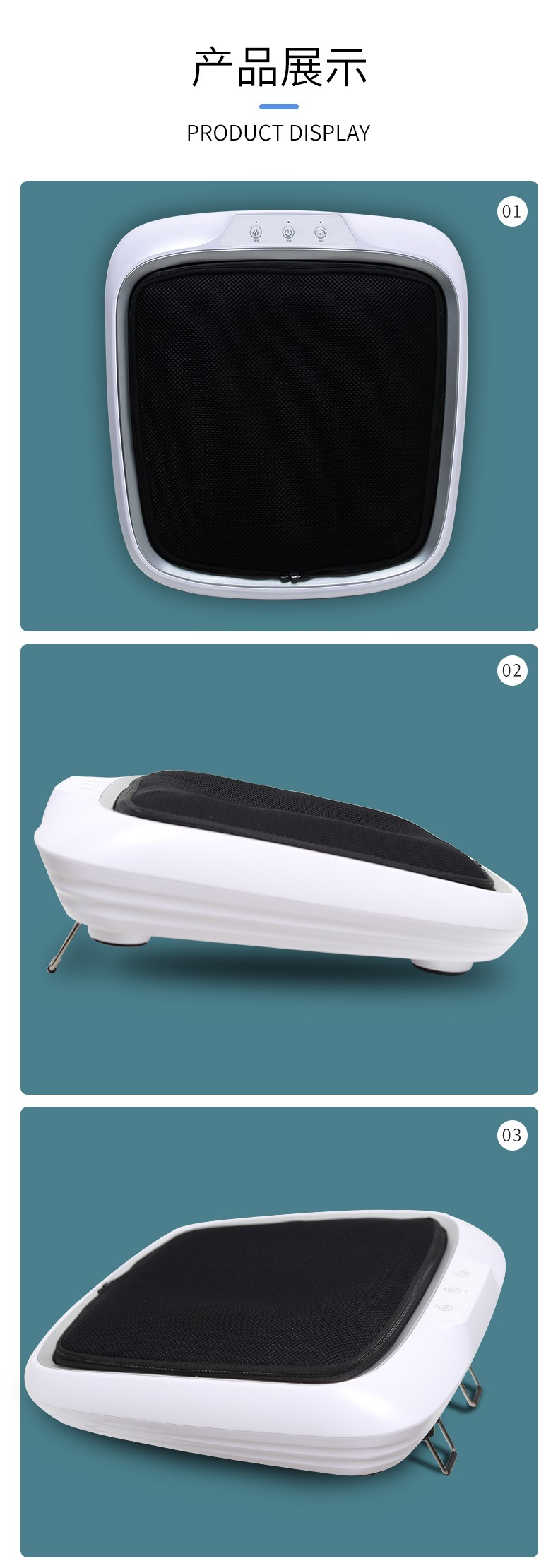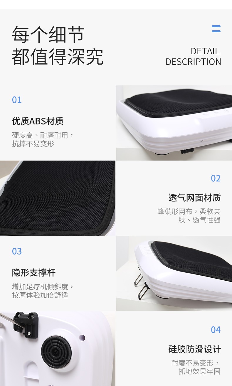 功能特征:腳底六個(gè)按摩頭,三檔力度調(diào)節(jié),按摩頭正反轉(zhuǎn),